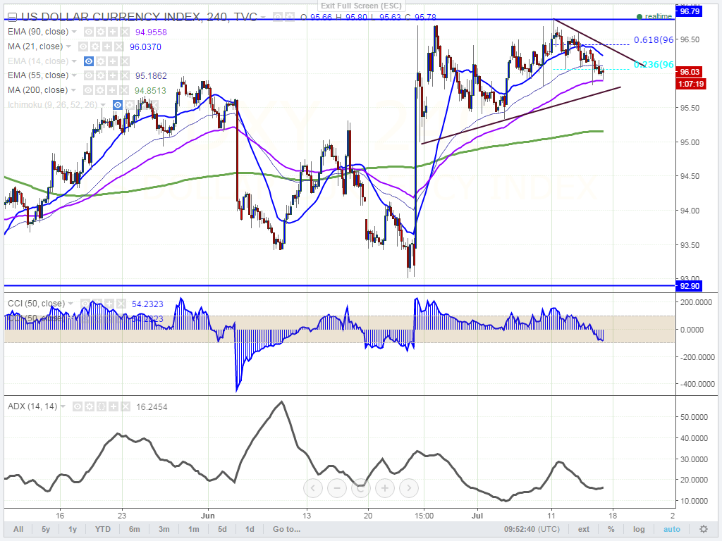 - Any indicative break above 96.80 will take the index to next level till 97.25/98. The minor resistance is at 96.45