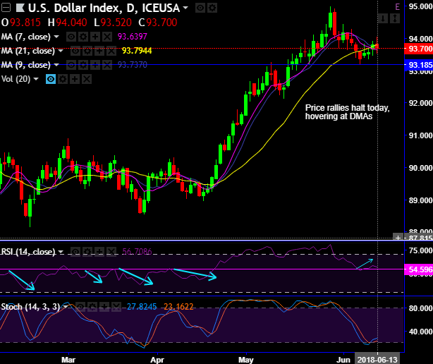 If you plot DXY futures price chart of daily and monthly terms, the price rallies from last 2-3 (days and months) have halted at this juncture (refer above technical charts). While the US Fed hiked its key funds rates yesterday conforming to the common consensus. The target range for the federal funds rate now is at 1.75%-2.00%. Policymakers no longer expect that key rates will for some time remain below their normal levels. Starting in January, Fed chair Powell will hold a press conference after every FOMC meeting.