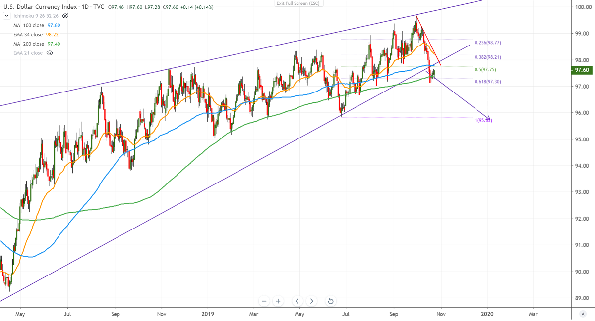 On the flip side, the near term major support is around 97 and any break below will drag the index down till 96.60/95.85.