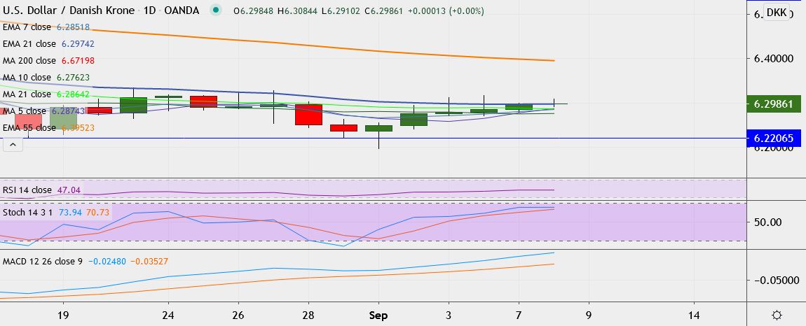 - USD/DKK is trading 0.05 percent higher at 6.3007, having hit high of 6.3163 on Friday, its highest since August 27.