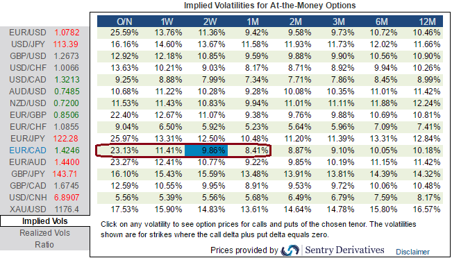 The current EURCAD ATM implied volatilities making extreme noise above 23% as the EUR heads into today's ECB meeting on the front foot, having staged an aggressive reversal post initial Italian referendum weakness on Monday.