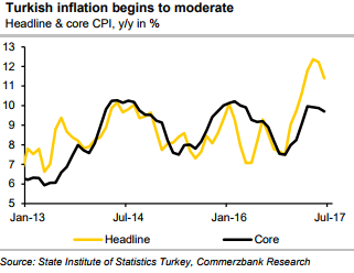 Turkish CPI data for June surprised the markets positively, although one may not see this from yesterday's TRY price action, which was driven more by rising US Treasury yields. But the CPI data themselves were fairly encouraging: the year-on-year inflation rates for both headline and core CPI surprised analysts to the downside; these inflation rates appear to have peaked (refer above chart).