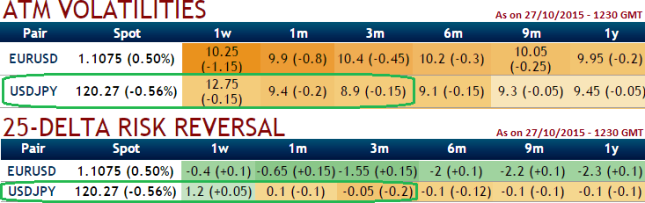 It also reveals the hedging activity for downside risks are intensified anticipating from 1 week to next 3 months in it is going in favor of Yen.