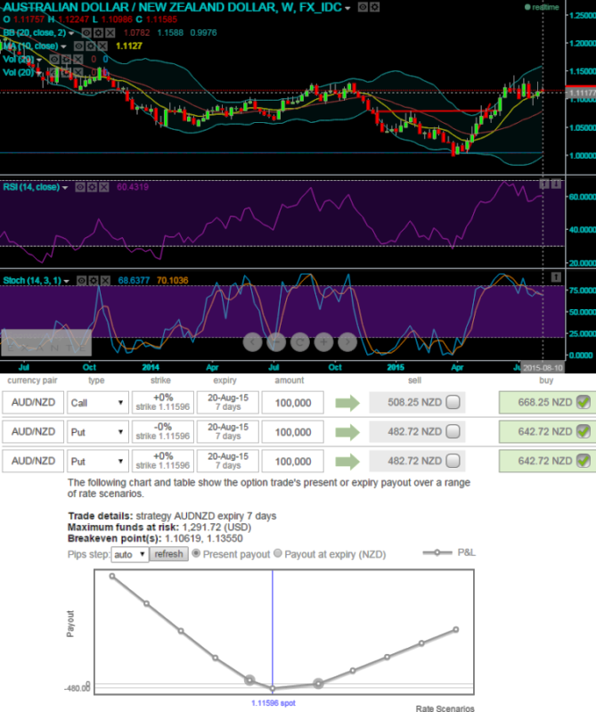 Hold 1M At-The-Money 0.50 delta call and simultaneously hold 1 lot of 15D At-The-Money -0.50 delta put options with positive theta values and one more put option 15D At-The-Money puts after squaring off 1st option. The rationale is quite simple, in near term the pair may experience slight downswing momentum but we foresee healthy upswings back again in medium term future, so participate in that uptrend 1M call is deployed along with 15D put for hedging.