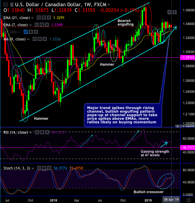 Technical Chart and Candlestick Patterns: USDCAD’s bullish engulfing candles at 1.3321 and 1.3296 levels are traced out (on both daily and weekly terms respectively) that has also signaled strength in upswings of this pair.