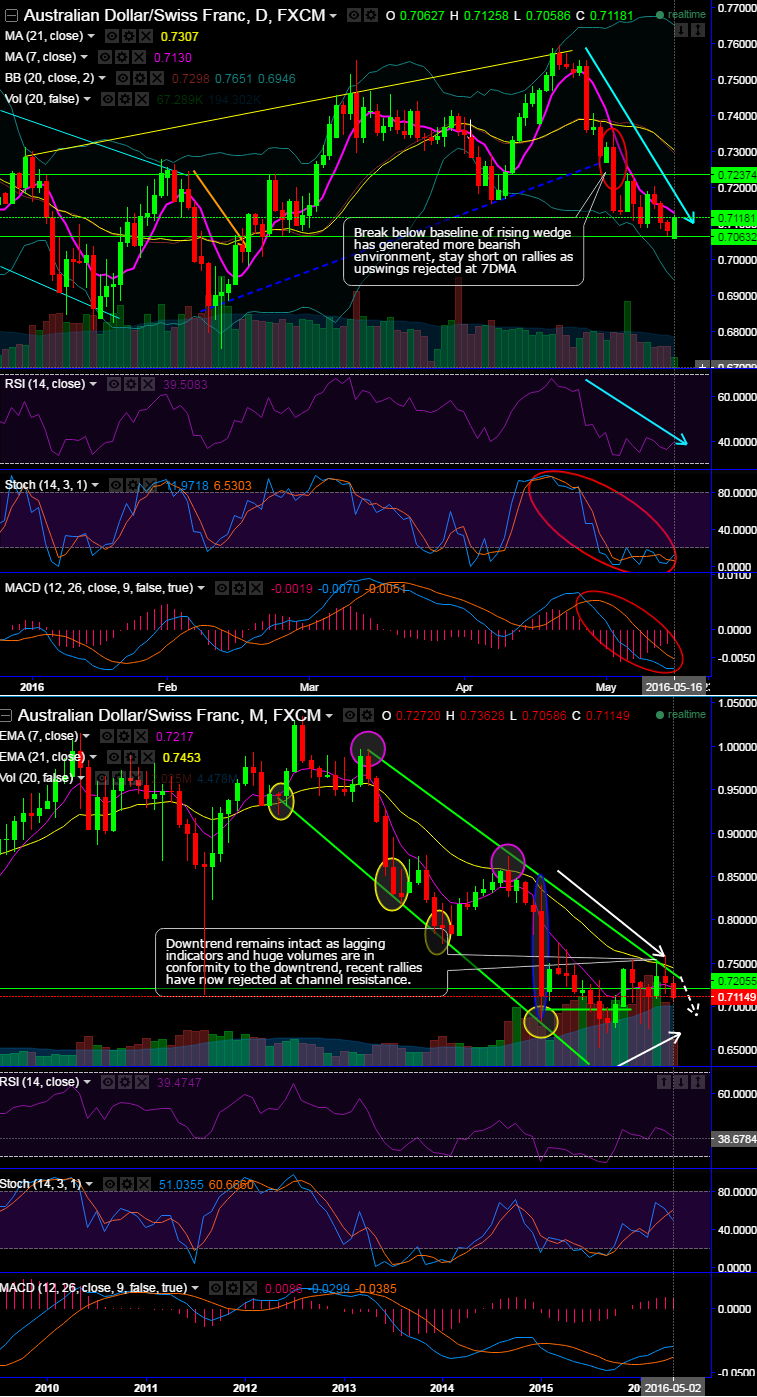 Well, for now the advice for long term investors to deal to with this pair is to wait for better clarity if the pair breaches and sustains above 0.7382 levels on a closing basis, otherwise major downtrend look sturdy thus far.