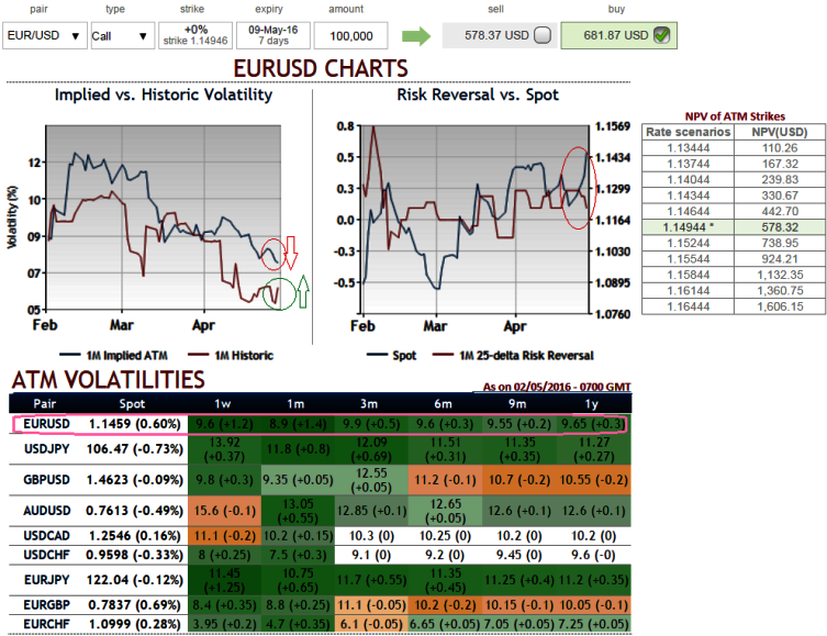 Given the strong probability of higher EUR/USD volatility in the coming weeks, paying a premium for a straddle is less attractive than going long directly via a variance swap.