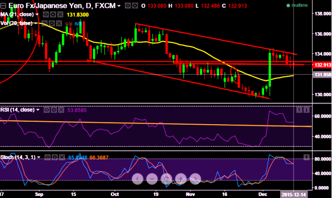Adverse scenario: Alternatively, the pair has failed to hold onto resistance ahead of Draghi's speech today with no much expectations, if it manages to snatch any good hints from this some abrupt rallies can be possible but again dramatic jumps above 133.420.