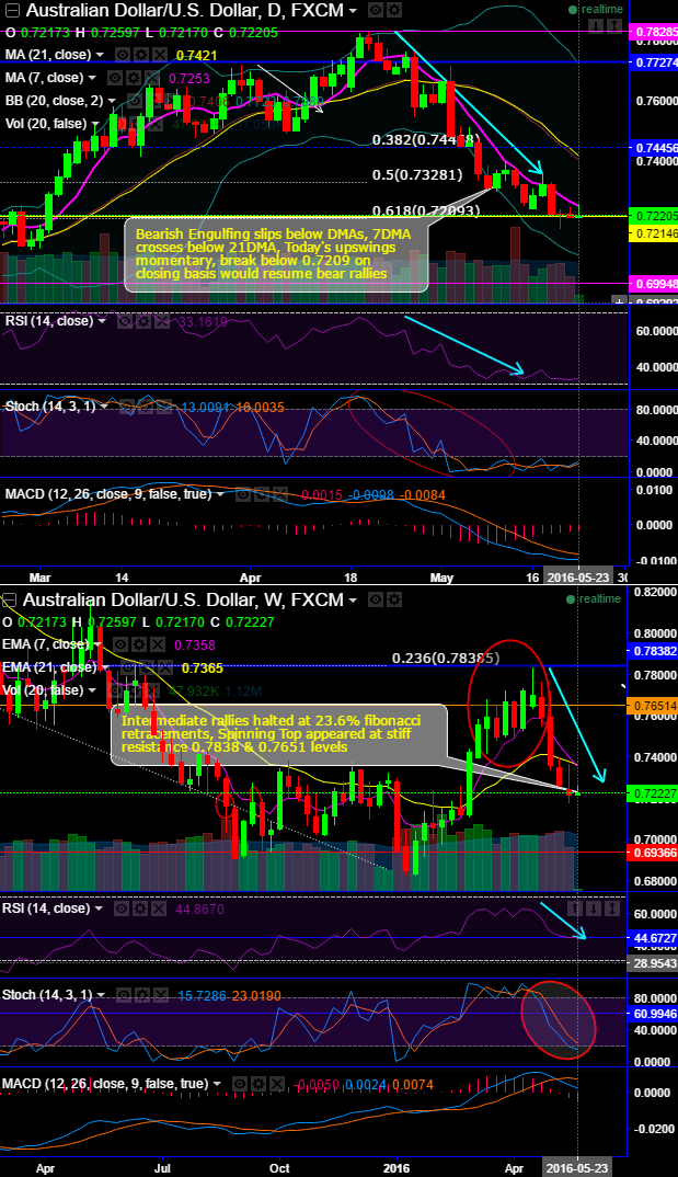 Currently, it is now testing support at 0.7209 levels, upon breach of this level then we could see more bearish pressures again.