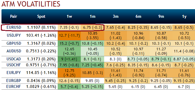 While current IVs of 1W ATM contracts of EURUSD are crawling reluctantly a tad below 7%, a massive drop from recent times, as a result option premiums likely to shrink away on account of time decay.