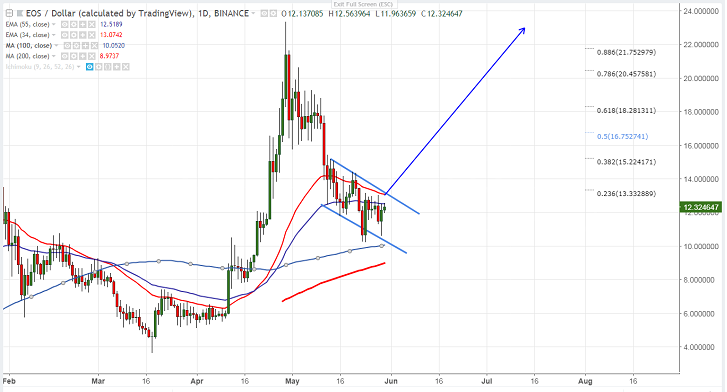 - EOS/USD has jumped almost 28% in the past two trading session as Main Net launch date nearing from the low of $11.74 level. Since 2017 EOS block chain operates as a smart contract platform, catering to decentralized application. Block.one the developer behind EOS has already raised a record breaking $4 billion by selling more than 900 million ERC-20 tokens in the yearlong coin offering launched Jun 26th 2018.The token that have been distributed will be transferred to MainNet EOS.IO is to be launched at 03 days 11 hour from now. The main net is scheduled to go live in 40 days and big exchanges like Bitfinex, Huobi and eToro has extended their support for EOS. EOS currently ranked in 5th position by Marketcap and jumped 1.65% today. It is currently trading around $12.40.