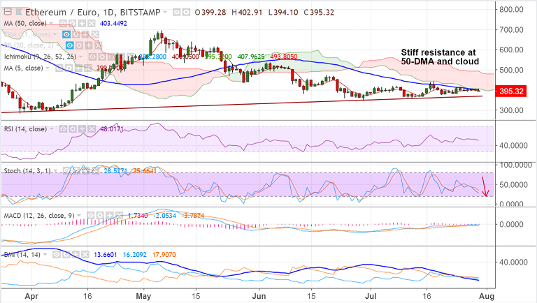 - ETH/EUR is trading in an extremely narrow range, intraday bias is neutral.