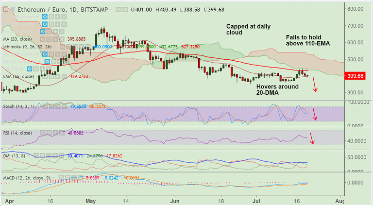 - ETH/EUR is extending downside after rejection at daily cloud.