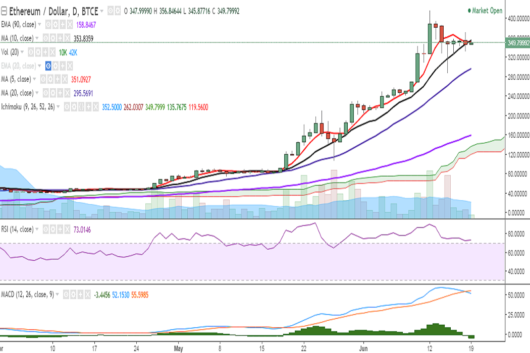 ETH/USD is trading in a very narrow range from past couple of sessions. It is currently trading at 347 levels at the time of writing (BTC-e).