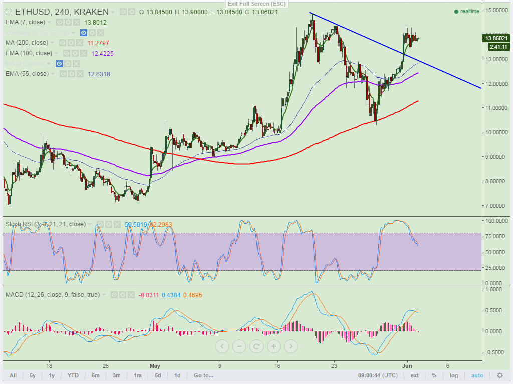 - ETH/USD price once again declined after spiking higher till $14.2980 yesterday. It is currently trading around $13.86.