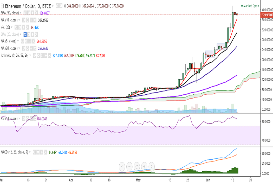 ETH/USD continues trading in the red on Wednesday. It is currently trading at 379 levels at the time of writing (BTC-e).