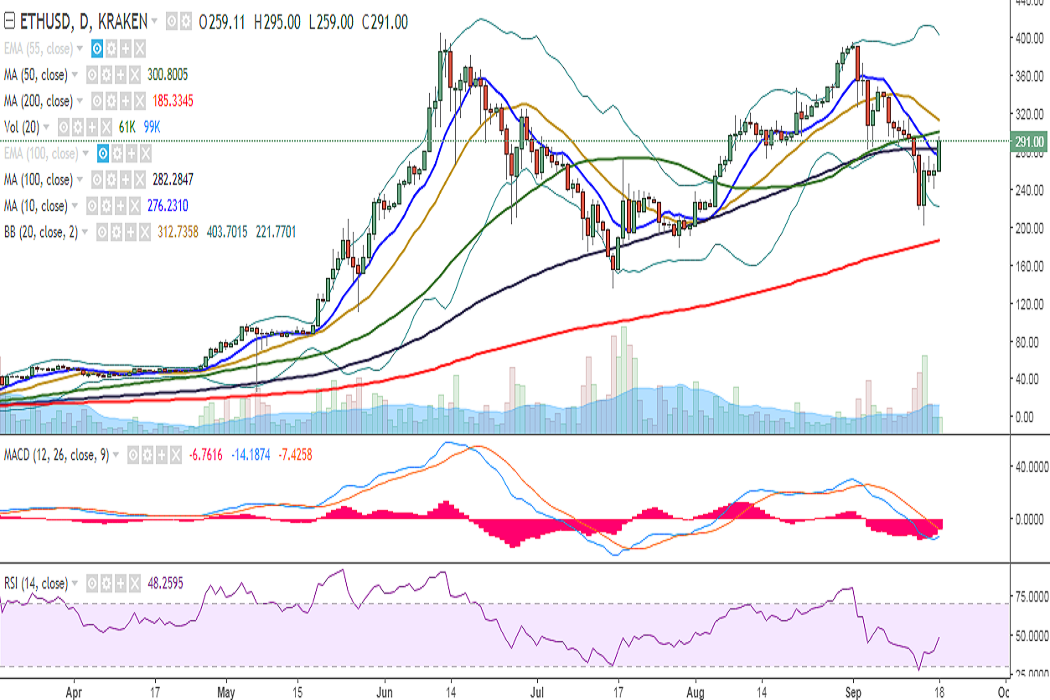 ETH/USD dropped to 201 levels on September 15. However, it has restored its strength to near 300 levels and is trading at 288 levels at the time of writing (Kraken).