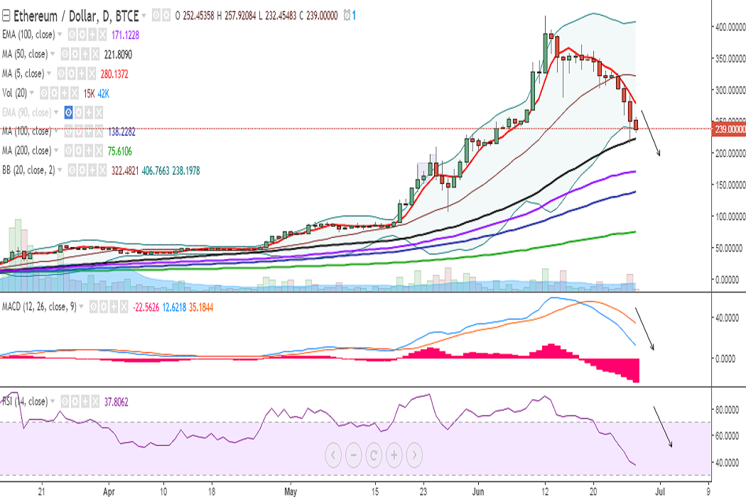 ETH/USD dropped to 216 levels on Monday, before closing at 252 levels. It is currently trading at 240 levels at the time of writing (BTC-e).