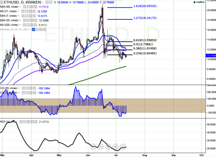 ETH/USD slightly recovered losses on Tuesday and is currently trading at 10.75 levels at the time of writing.