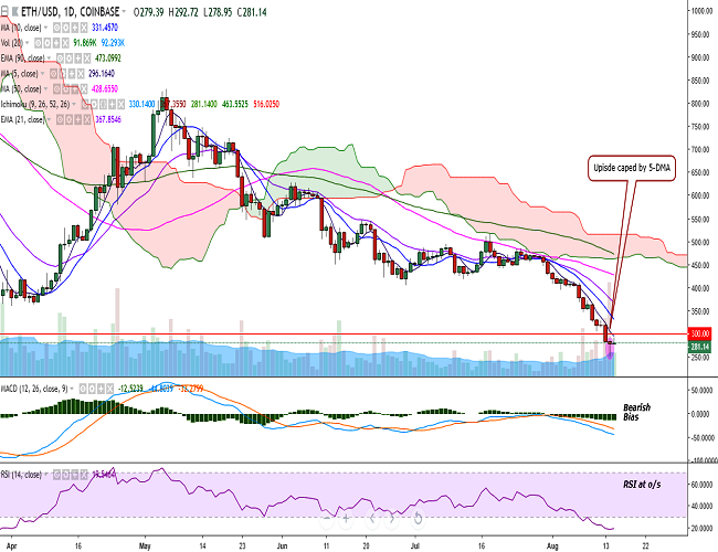 ETH/USD is trading in a narrow range on Wednesday with its upside capped by 5-DMA.