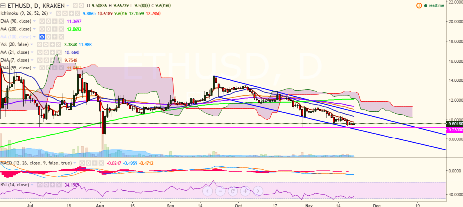ETH/USD has taken support near 9.50 levels and is trying to hold its strength above this level. It is currently trading at 9.77 levels (Kraken).