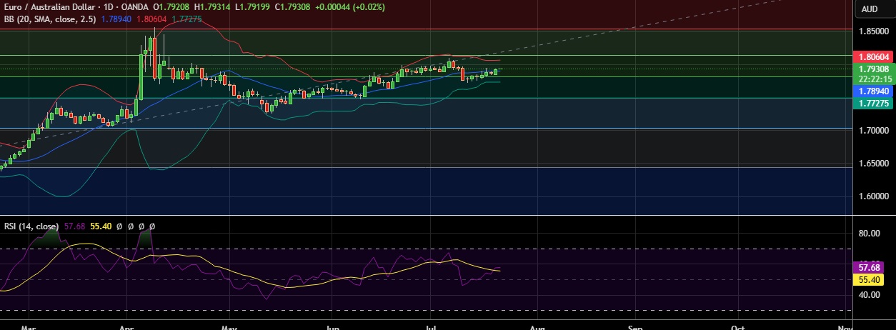 • EUR/AUD rose on Monday as uncertainty about trade negotiations between the United States and the European Union supported a rally in euro.