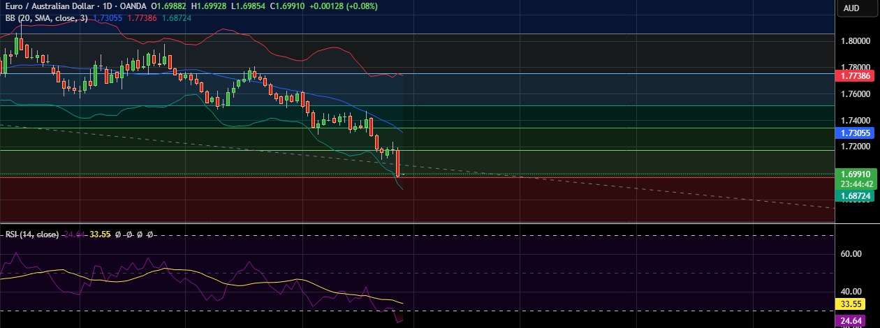 • Strong support is seen at 1.6966(23.6%fib) and break below could take the pair towards 1.6882(Lower BB).