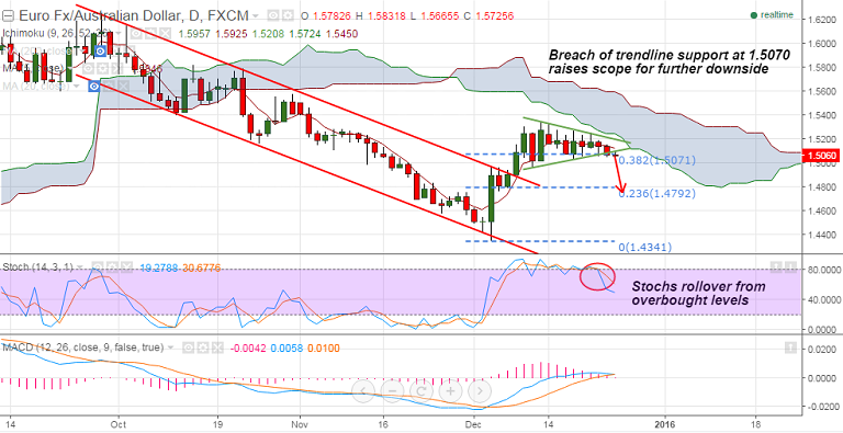 EUR/AUD has breached strong trendline support at 1.5070 after 3 weeks of the choppy range trade.