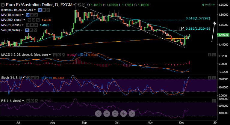 FxWirePro: EUR/AUD closes above 20 DMA at 1.4809, 1.5200 target in sight