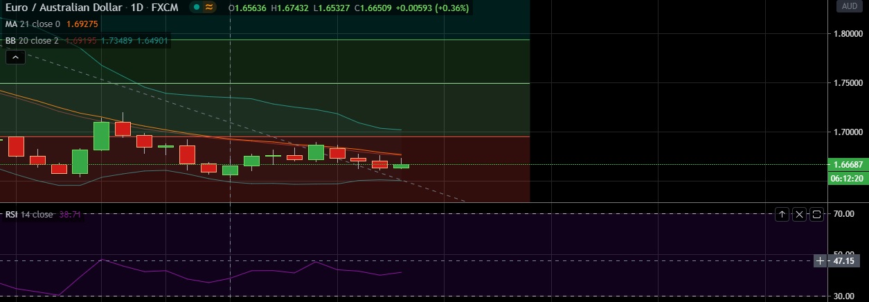 • Immediate support is seen at 1.6600 ( Psychological level) and break below could take the pair towards 1.6496 (Lower BB).