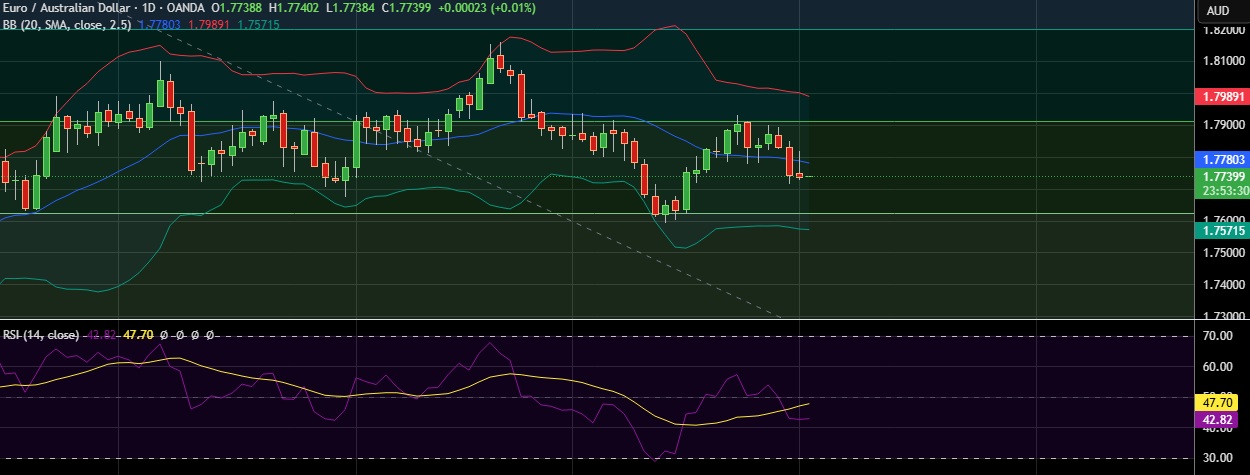 • Strong support is seen at 1.7623(38.2%fib) and break below could take the pair towards 1.7570(Lower BB).