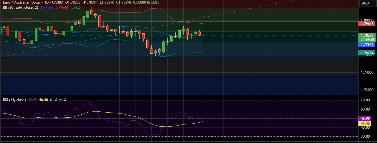 • Immediate resistance is located at 1.7871(50%fib), any close above will push the pair towards 17967(Higher BB)