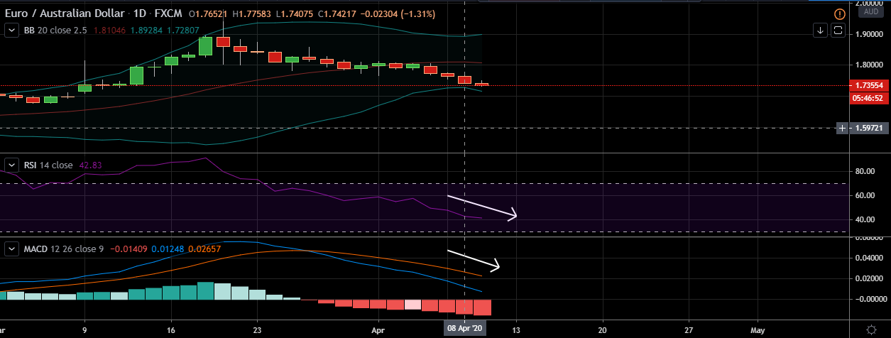 • EUR/AUD declined on Thursday as riskier currencies like Australian dollar continued to gain on cautious hopes that coronavirus pandemic is peaking.