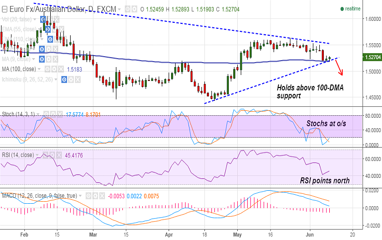 - EUR/AUD has taken 100-DMA support at 1.5190 and edged higher to currently trade around 1.5260 levels.