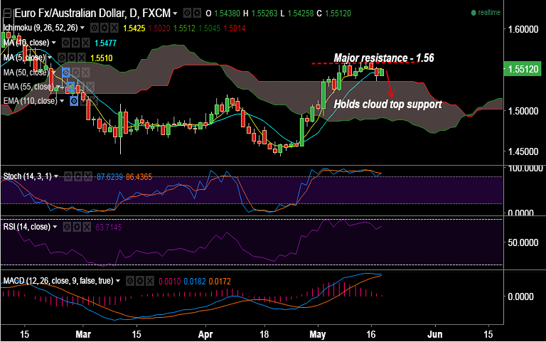 FxWirePro: EUR/AUD major resistance at 1.56, further upside only on breaks above