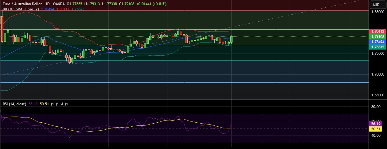 • Immediate resistance is located at 1.8018 ( Higher BB), any close above will push the pair towards 1.8085 (38.2%fib)