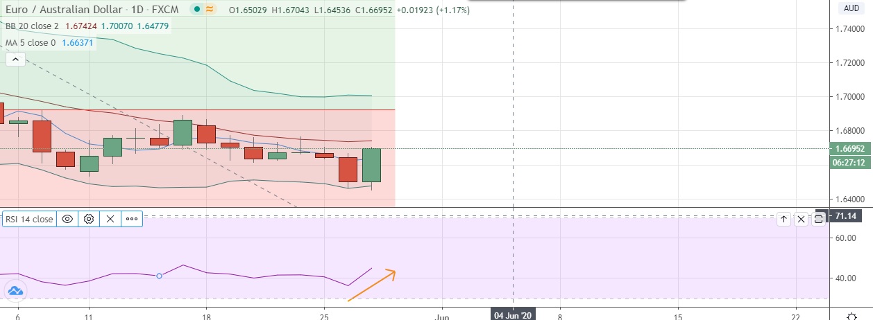 • EUR/AUD rose sharply on Wednesday as the pair was lifted by EU recovery fund proposals.