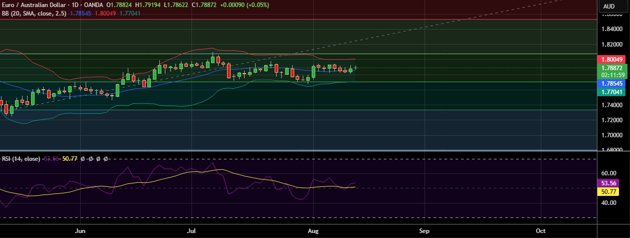 • Strong support is seen at 1.7850 (20SMA) and break below could take the pair towards 1.7698(50%fib)