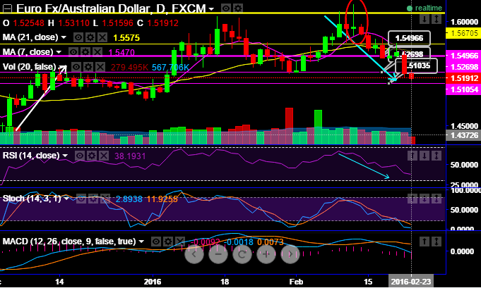 Hence, we would foresee euro on weaker side on the back of today's poor German IFO business climate at -105.7 which is a decline from previous 107.3. So, it is foreseen that pair to slip towards 1.5105 levels shortly.