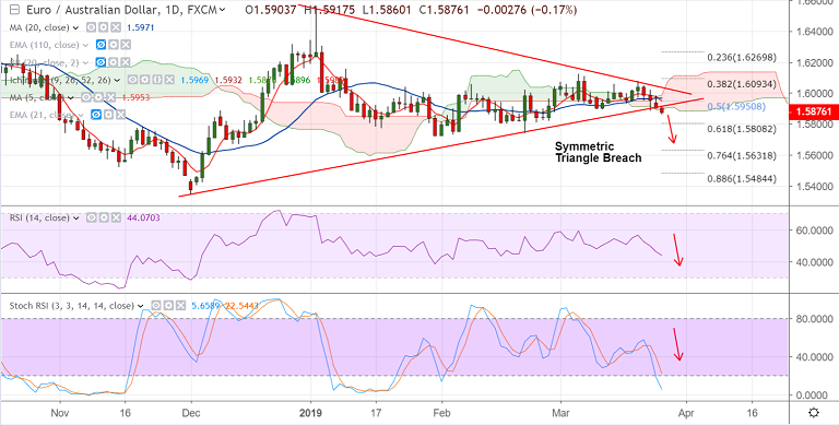 - 'Symmetric Triangle' breach has raised scope for further downside.