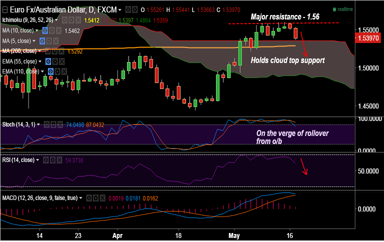 - Break below daily cloud finds next strong support at 1.5292 (200-DMA) and further below at 1.5220 (May 5th lows).
