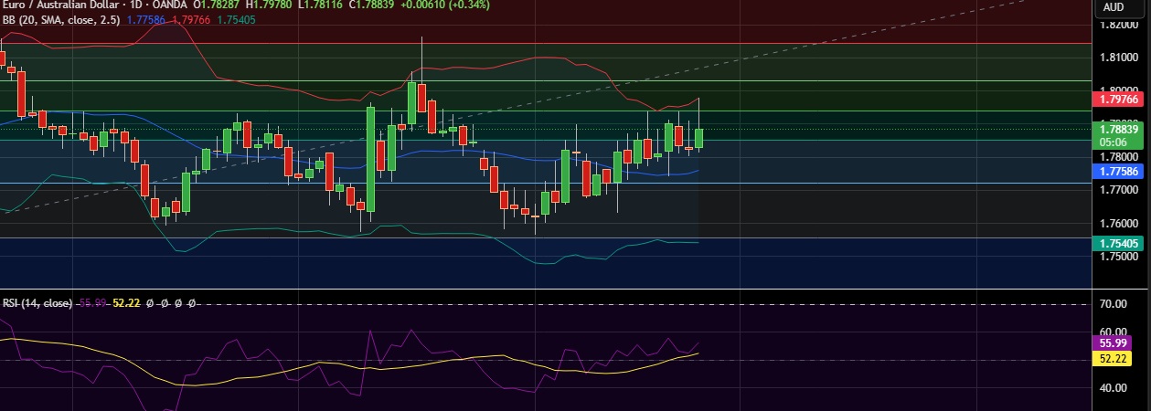 • Immediate resistance is located at 1.7939(50%fib), any close above will push the pair towards 1.7980 (Higher BB).
