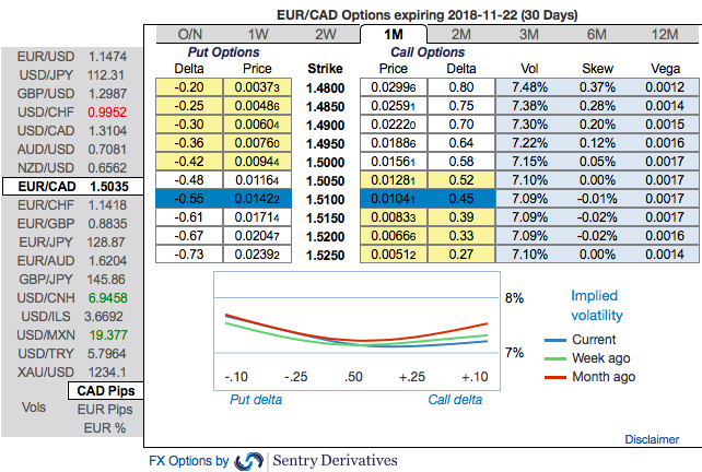 EURCAD OTC outlook: Implied volatilities of this pair have been on the lower side, well below 7.5% across all tenors.