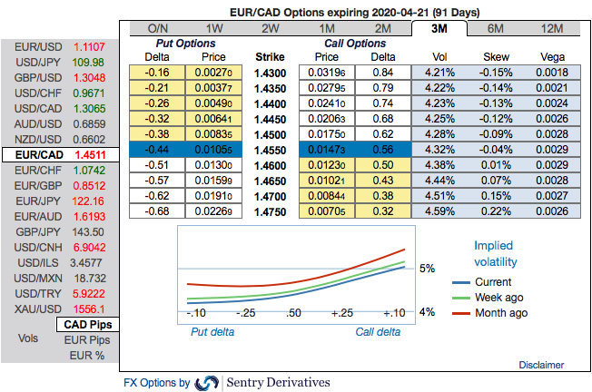While positively skewed IVs of EURCAD have also been indicating upside risks, bids for OTM Calls are on high demand as the hedging sentiments for upside risks are intensified (refer above nutshell).