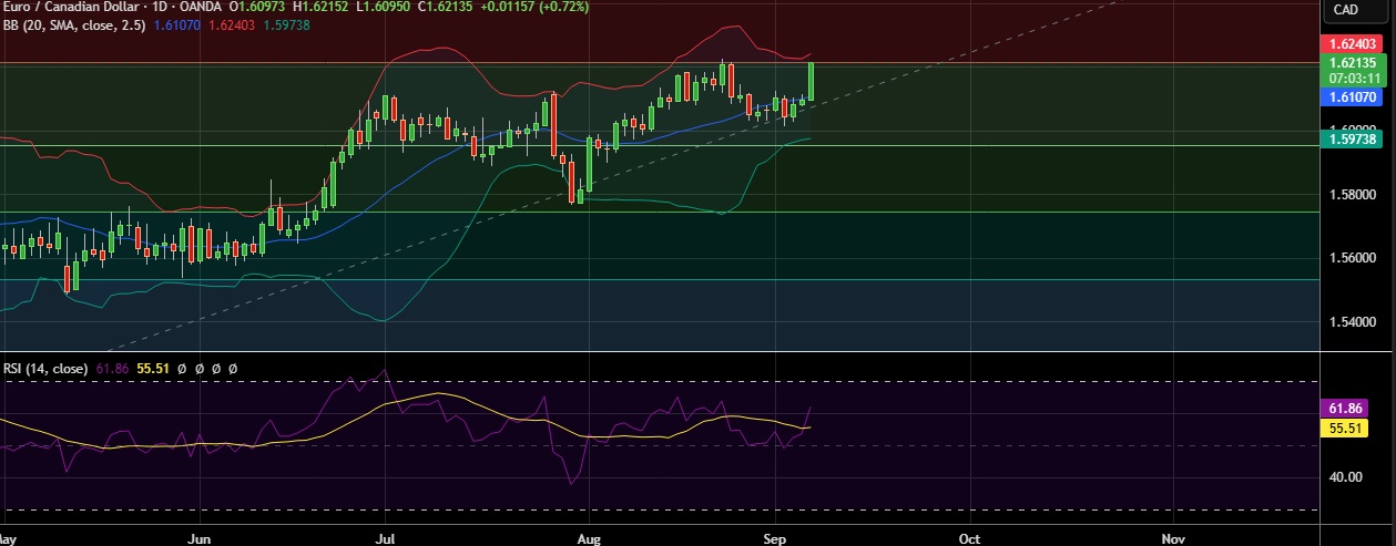 • EUR/CAD surged Friday as unexpected Canadian August job losses boosted bets on a Bank of Canada rate cut.