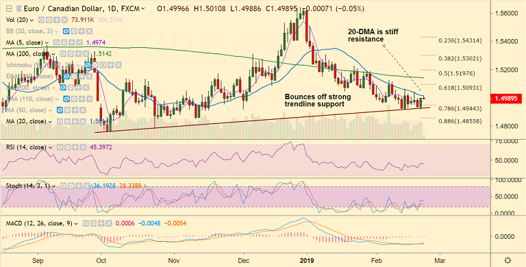 - EUR/CAD is trading in a narrow range at 1.4988 at 1000 GMT.