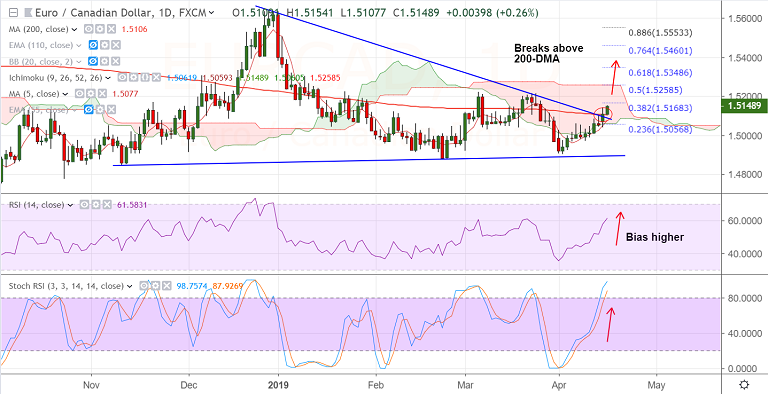 - EUR/CAD spikes past 200-DMA, hits new monthly highs at 1.5154.