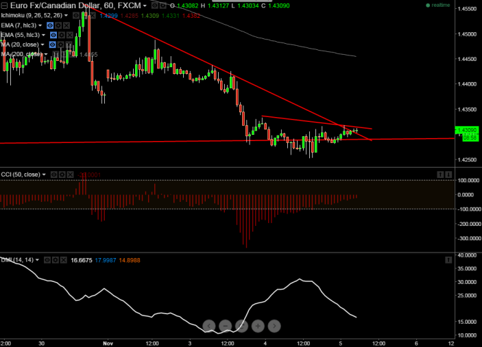 EUR/CAD has made a low of 1.4250 and started to recover from that level. It is currently trading around 1.3105.