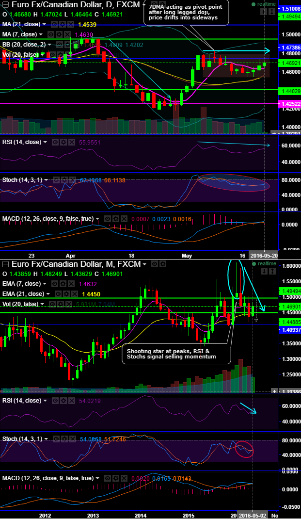 But, ever since the formation of shooting star on monthly charts and break out below 1.4949, the pair has more downside potential, currently at 1.4680 levels hanging at 7EMA.