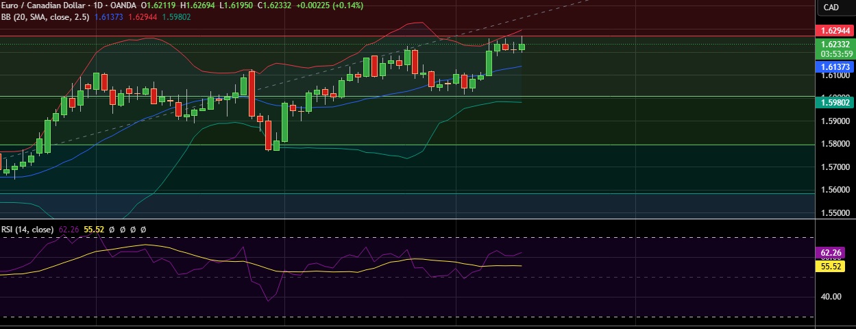 • EUR/CAD initially gained but gave up ground as investors digested European Central Bank decision to keep interest rates unchanged.